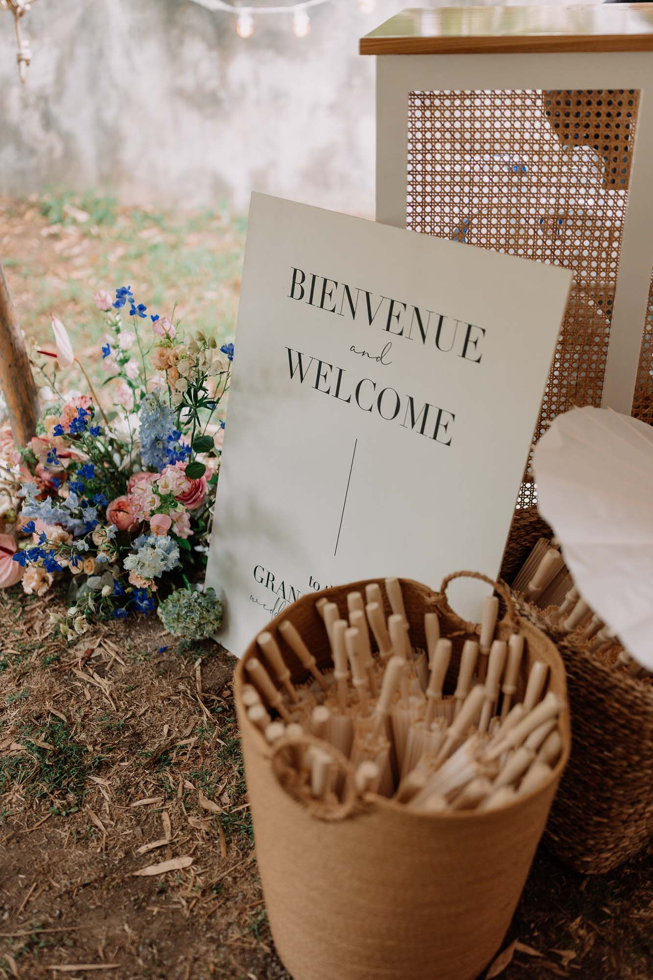 Be Lounge a agrémenté le lieu de jolis accessoires : Banquette en rotin, chaises Cross Back, Bar en cannage pour le verre d’accueil…Une petite éclaircie a permis aux invités de profiter d’un cocktail au Poolhouse et c’est