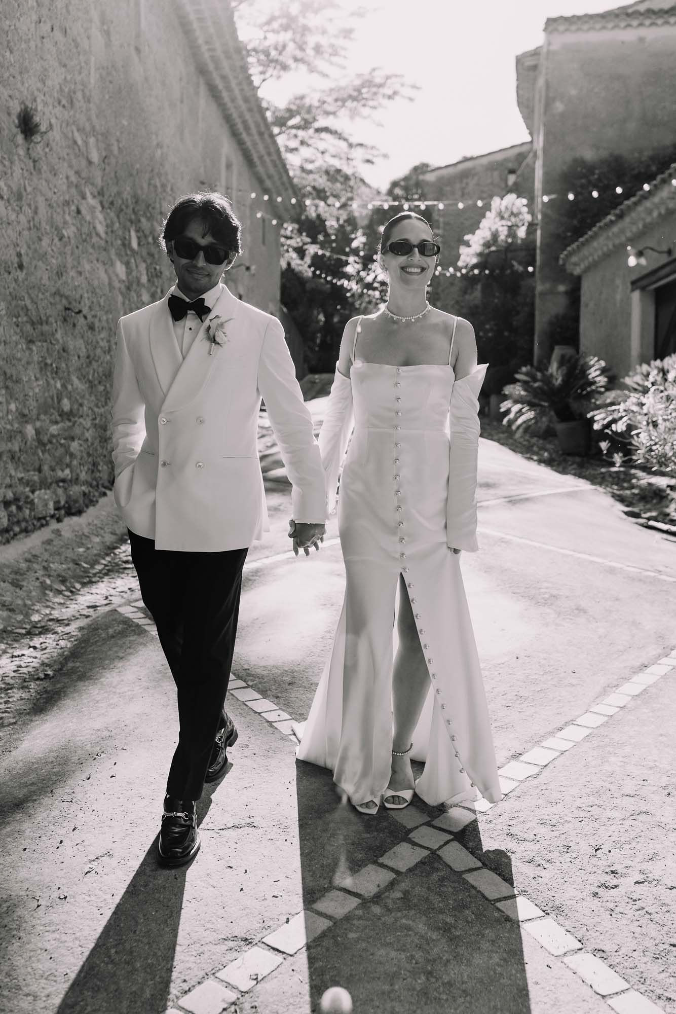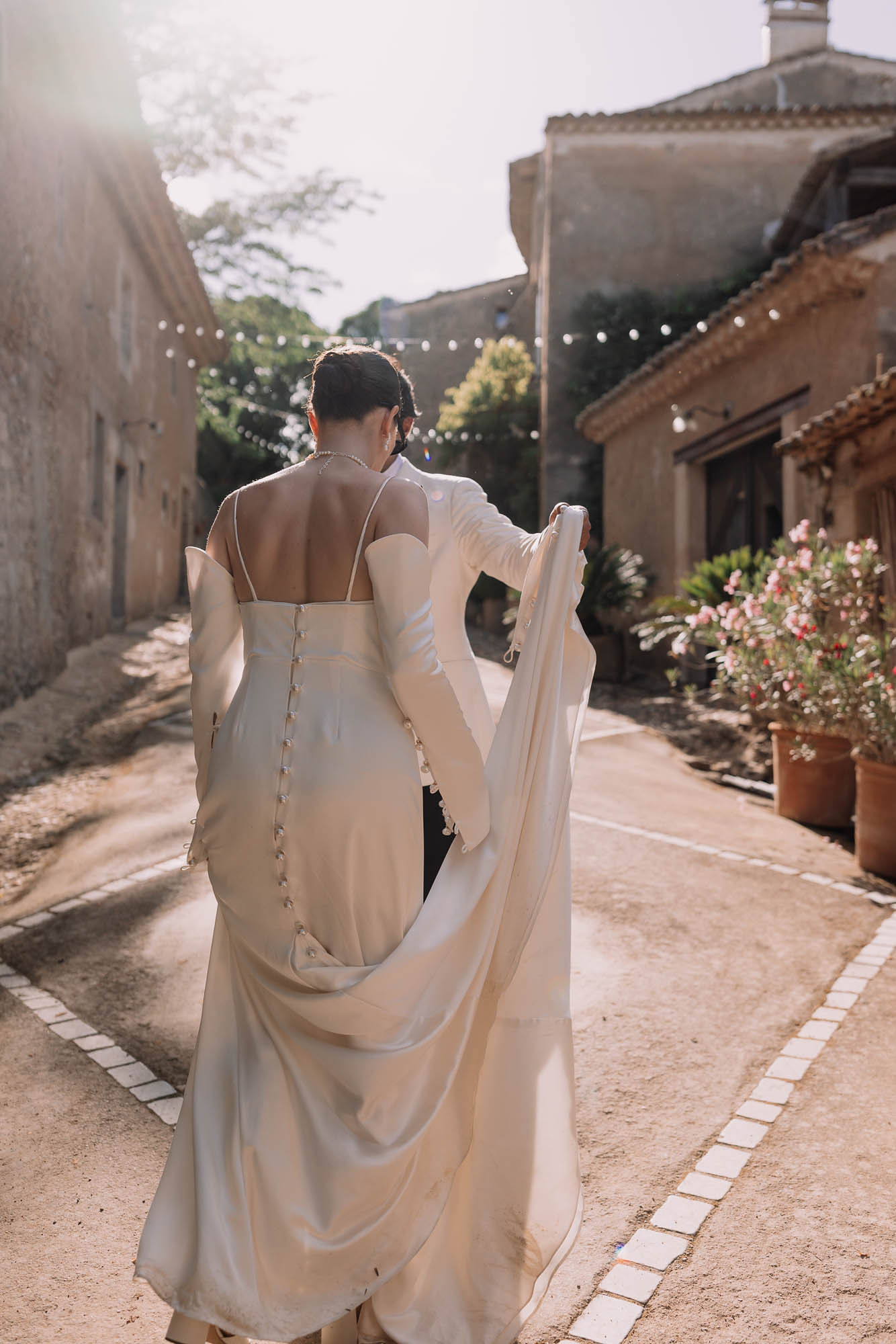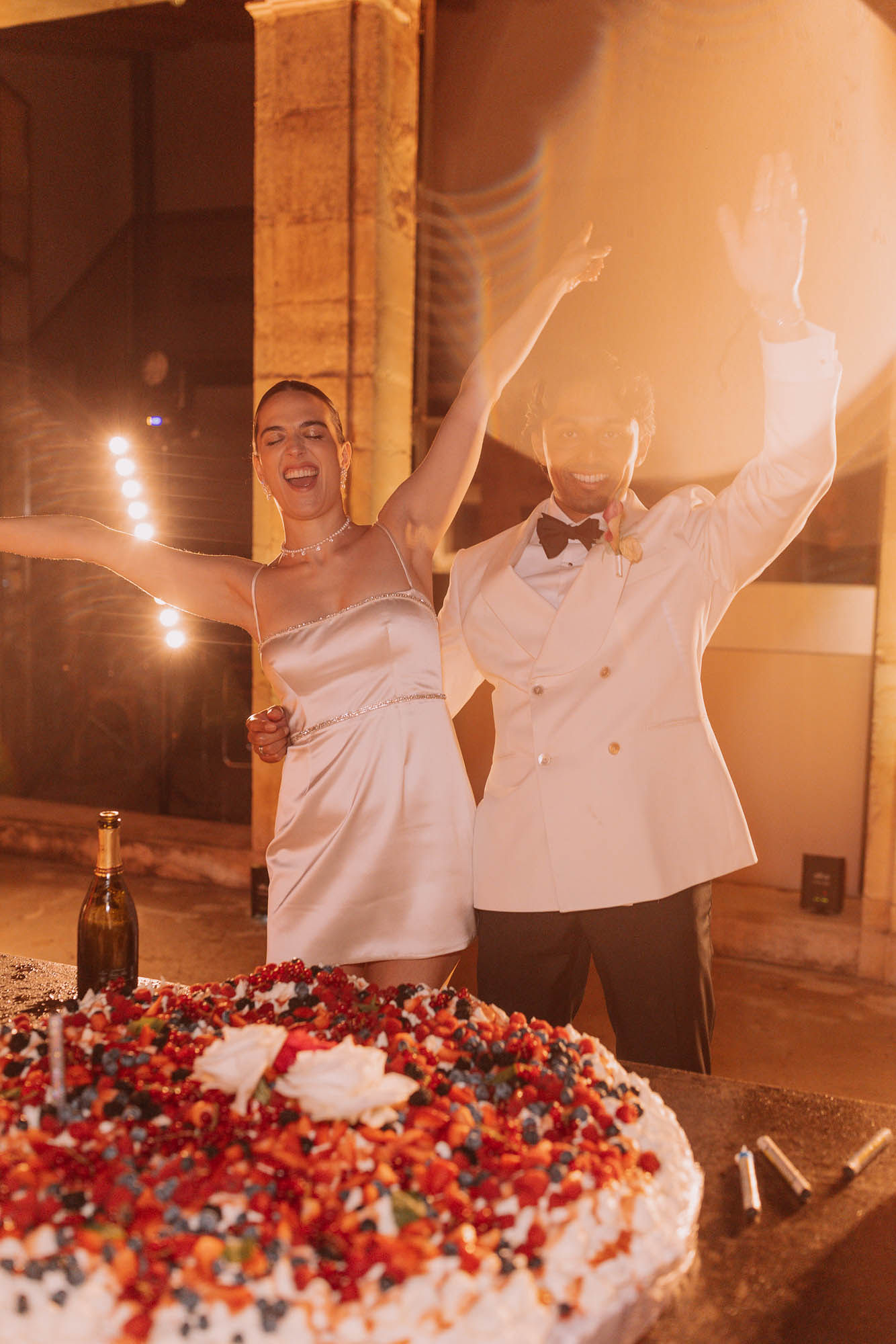 Maison Nans qui les a régalés. Du cocktail au dessert, ils ont pu profiter d’un bar à huitres, d’un bar à foie gras, d’animations culinaires, de plats a partager et d’une Pavlova géante en guise de dessert. Lors de la soirée, pour ravir les invités, l’incontournable Bar à cocktails avec Spritz et Mojito minute ! Le couple anglophone venu du Royaume Uni pour célébrer son mariage dans le sud de la France a ajouté des touches mêlant tradition et authenticité, pour un mariage sur mesure et à leur image. Ce mariage intimiste a été immortalisé par