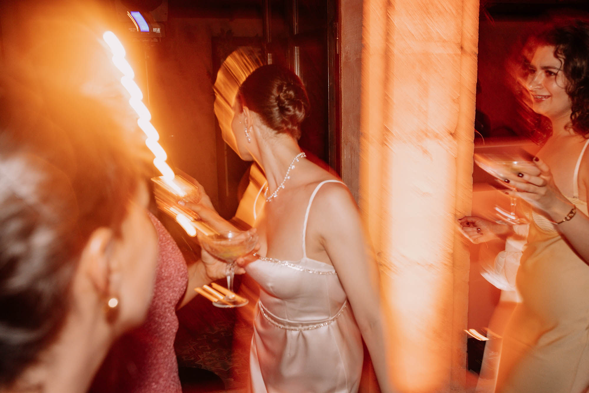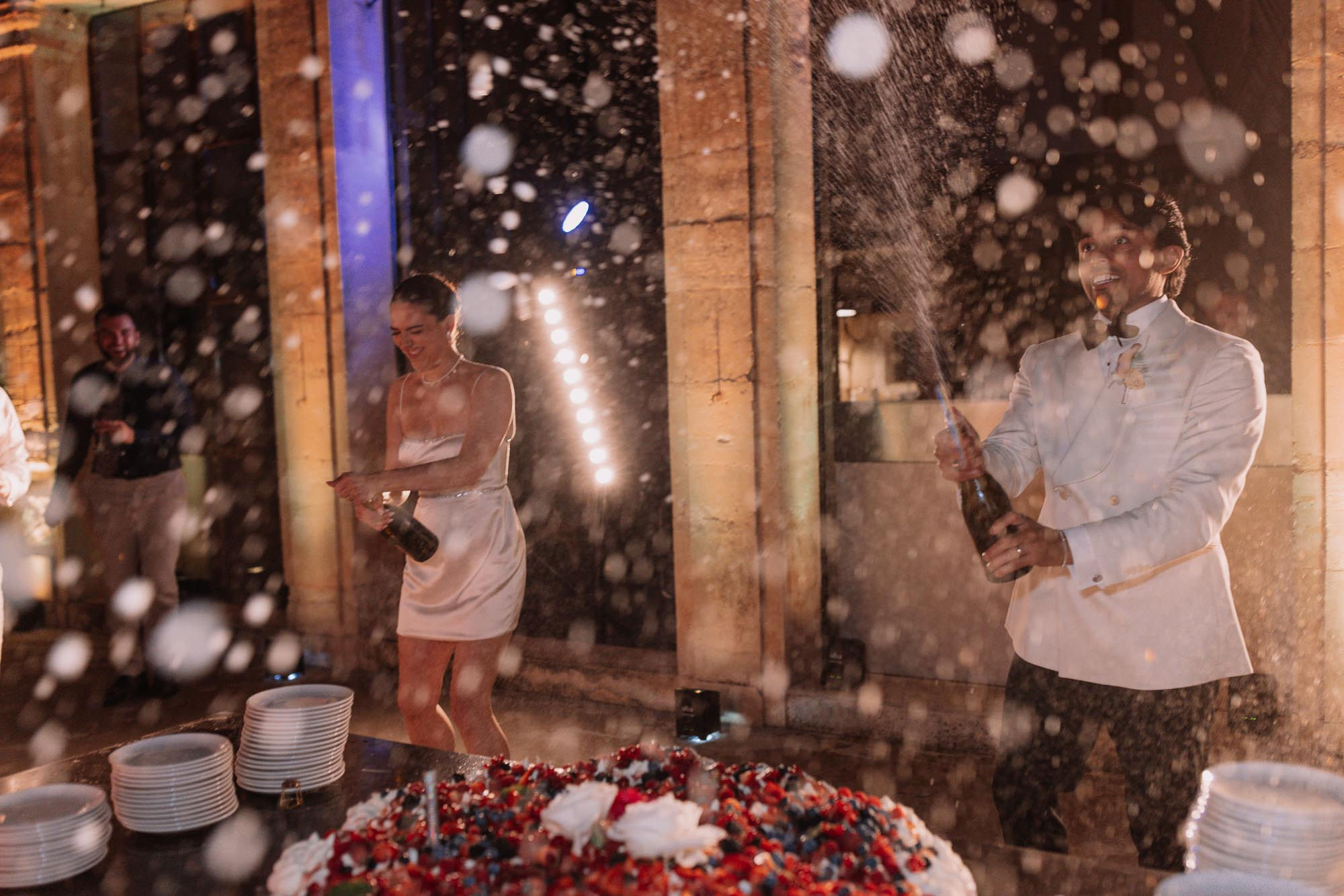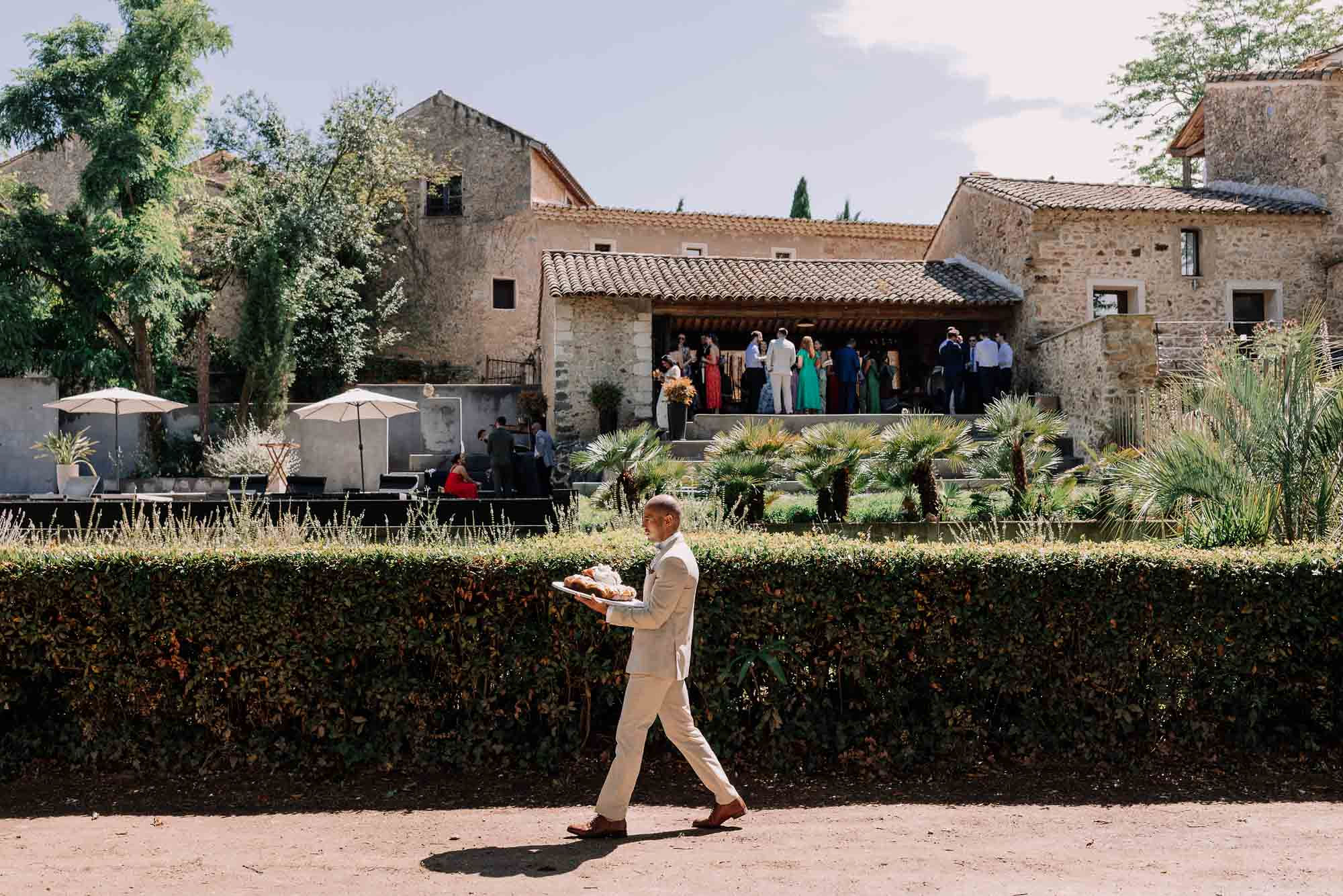 Maison Nans qui les a régalés. Du cocktail au dessert, ils ont pu profiter d’un bar à huitres, d’un bar à foie gras, d’animations culinaires, de plats a partager et d’une Pavlova géante en guise de dessert. Lors de la soirée, pour ravir les invités, l’incontournable Bar à cocktails avec Spritz et Mojito minute ! Le couple anglophone venu du Royaume Uni pour célébrer son mariage dans le sud de la France a ajouté des touches mêlant tradition et authenticité, pour un mariage sur mesure et à leur image. Ce mariage intimiste a été immortalisé par